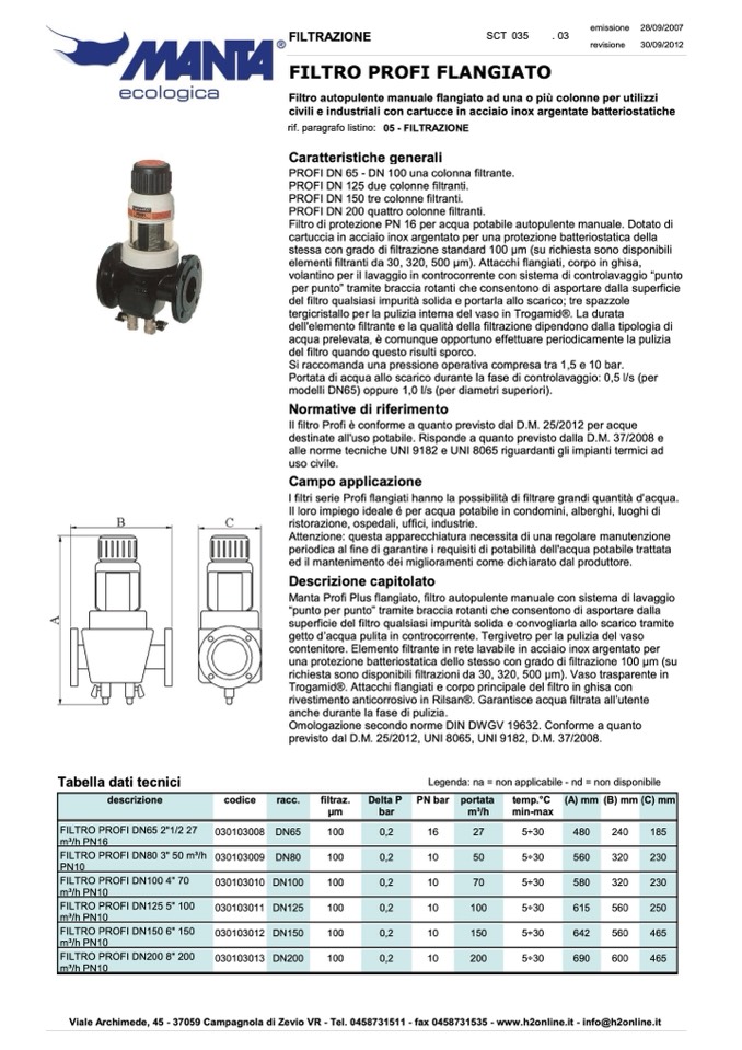 rif. paragrafo listino: 05 - FILTRAZIONE