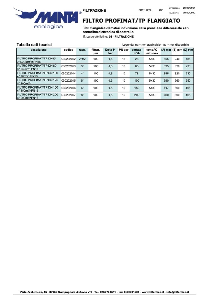rif. paragrafo listino: 05 - FILTRAZIONE