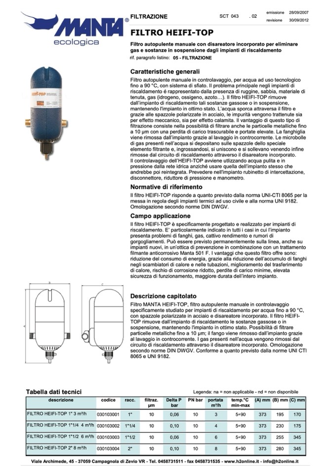 Filtro MANTA HEIFI-TOP, filtro autopulente manuale in controlavaggio