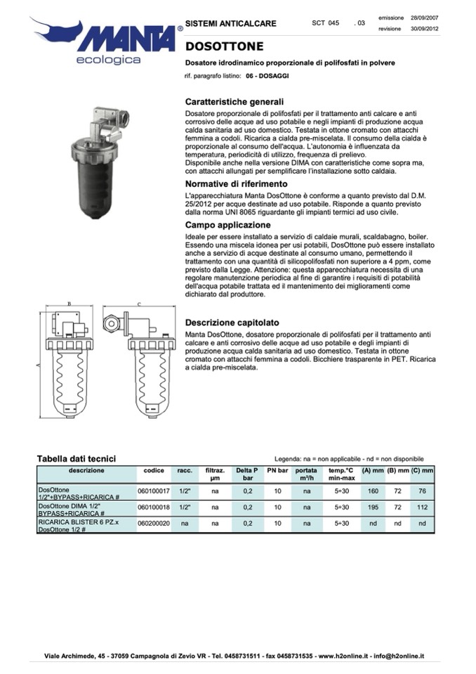 Manta DosOttone, dosatore proporzionale di polifosfati per il trattamento anti