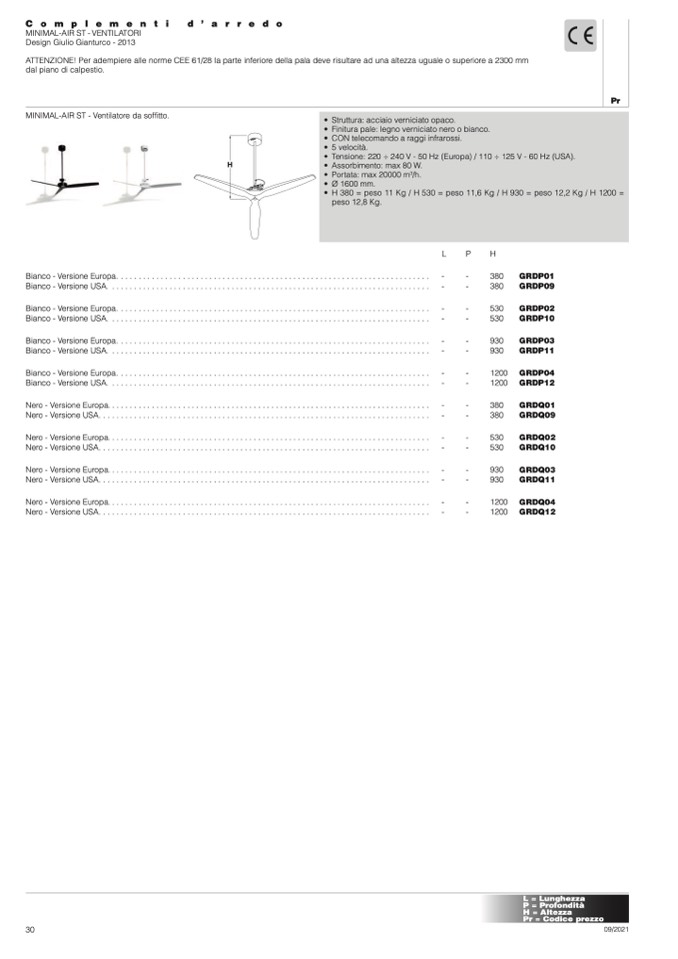 ATTENZIONE! Per adempiere alle norme CEE 61/28 la parte inferiore della pala deve risultare ad una altezza uguale o superiore a 2300 mm