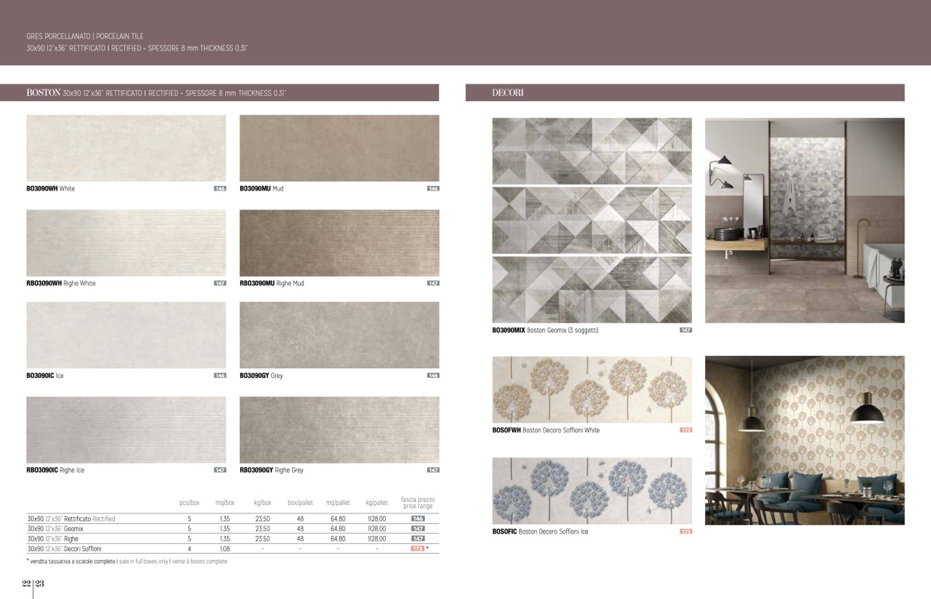 30x90 12”x36” RETTIFICATO I RECTIFIED - SPESSORE 8 mm THICKNESS 0.31”