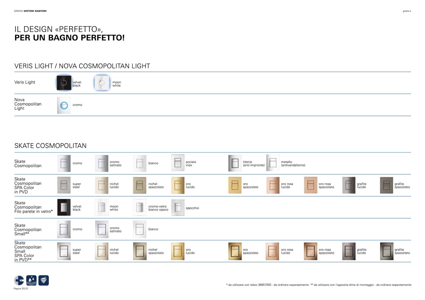 * da utilizzare con telaio 38957000 - da ordinare separatamente ** da utilizzare con l’apposita dima di montaggio - da ordinare separatamente