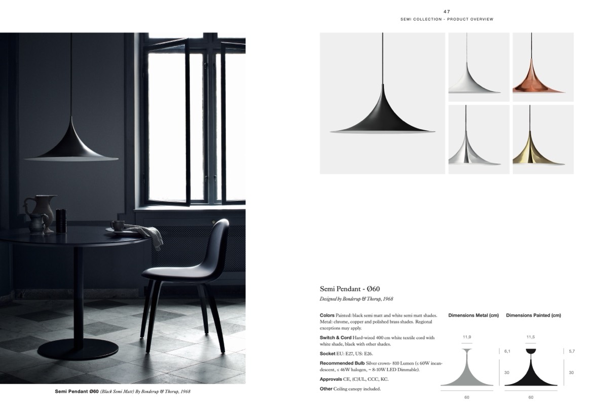 Metal: chrome, copper and polished brass shades. Regional