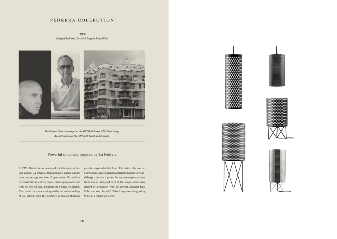 with his own designs, including the Pedrera Collection.