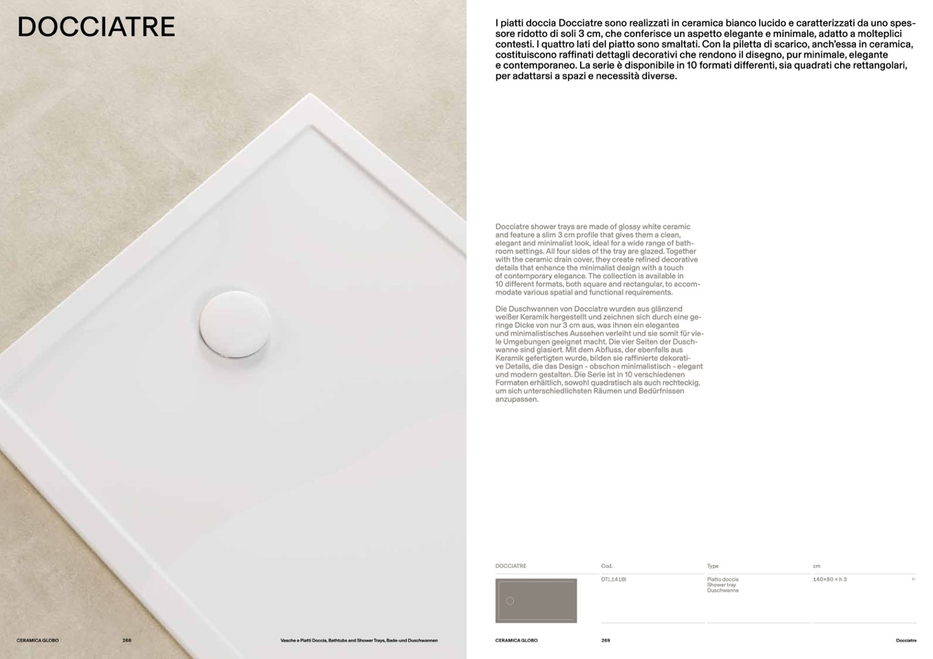 I piatti doccia Docciatre sono realizzati in ceramica bianco lucido e caratterizzati da uno spes