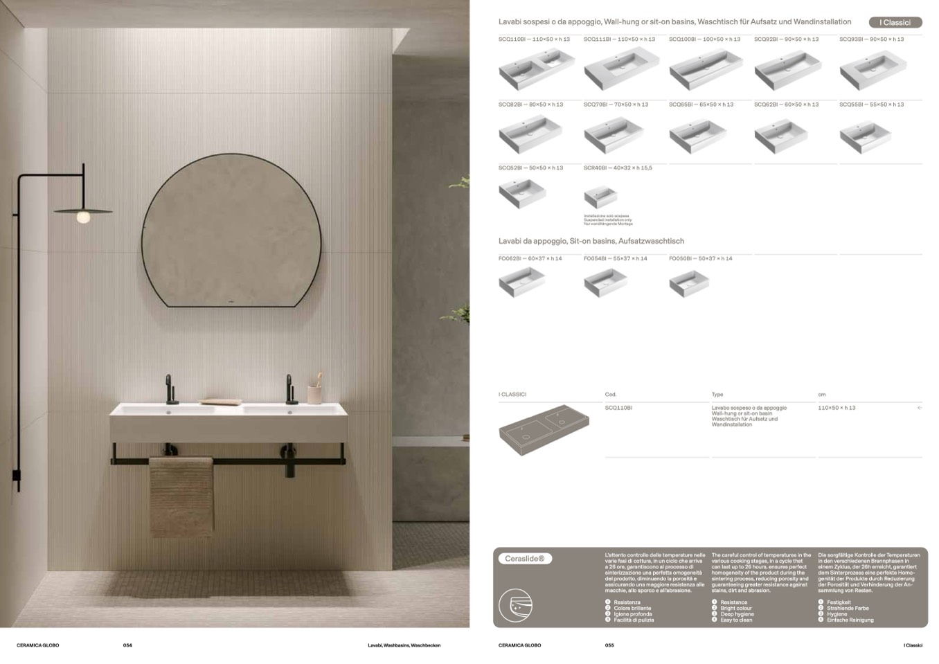 Lavabi sospesi o da appoggio, Wall-hung or sit-on basins, Waschtisch für Aufsatz und Wandinstallation