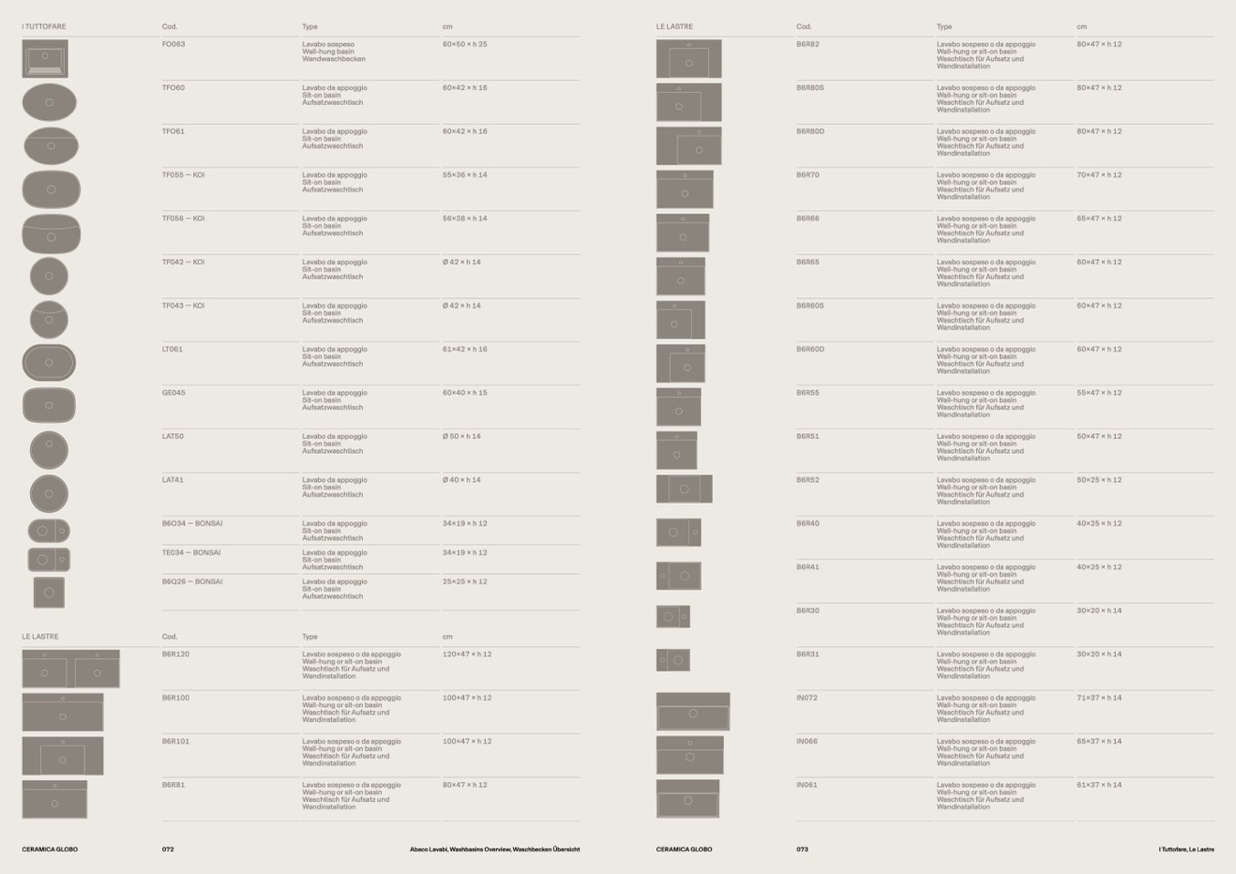 Abaco Lavabi, Washbasins Overview, Waschbecken Übersicht