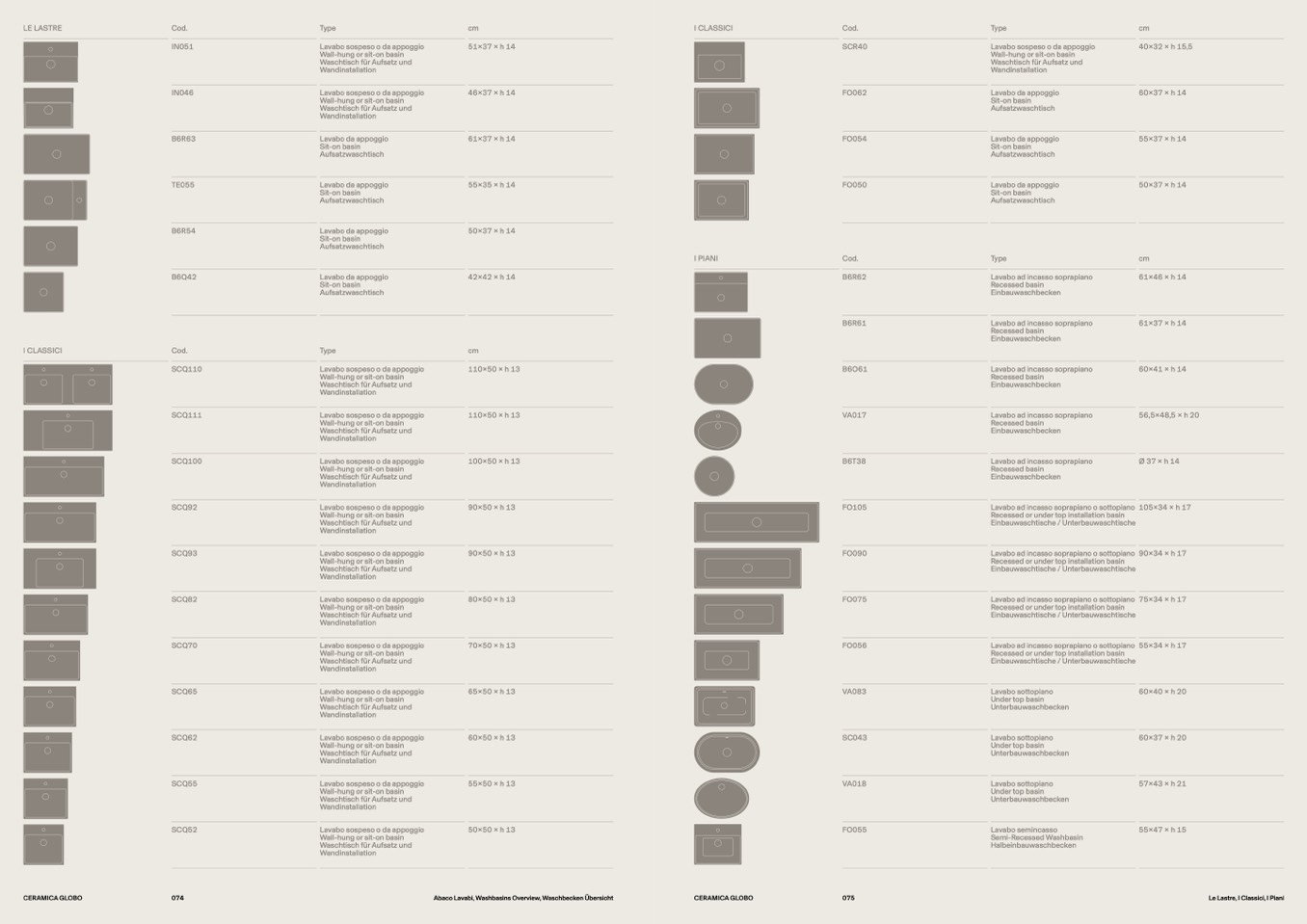 Abaco Lavabi, Washbasins Overview, Waschbecken Übersicht