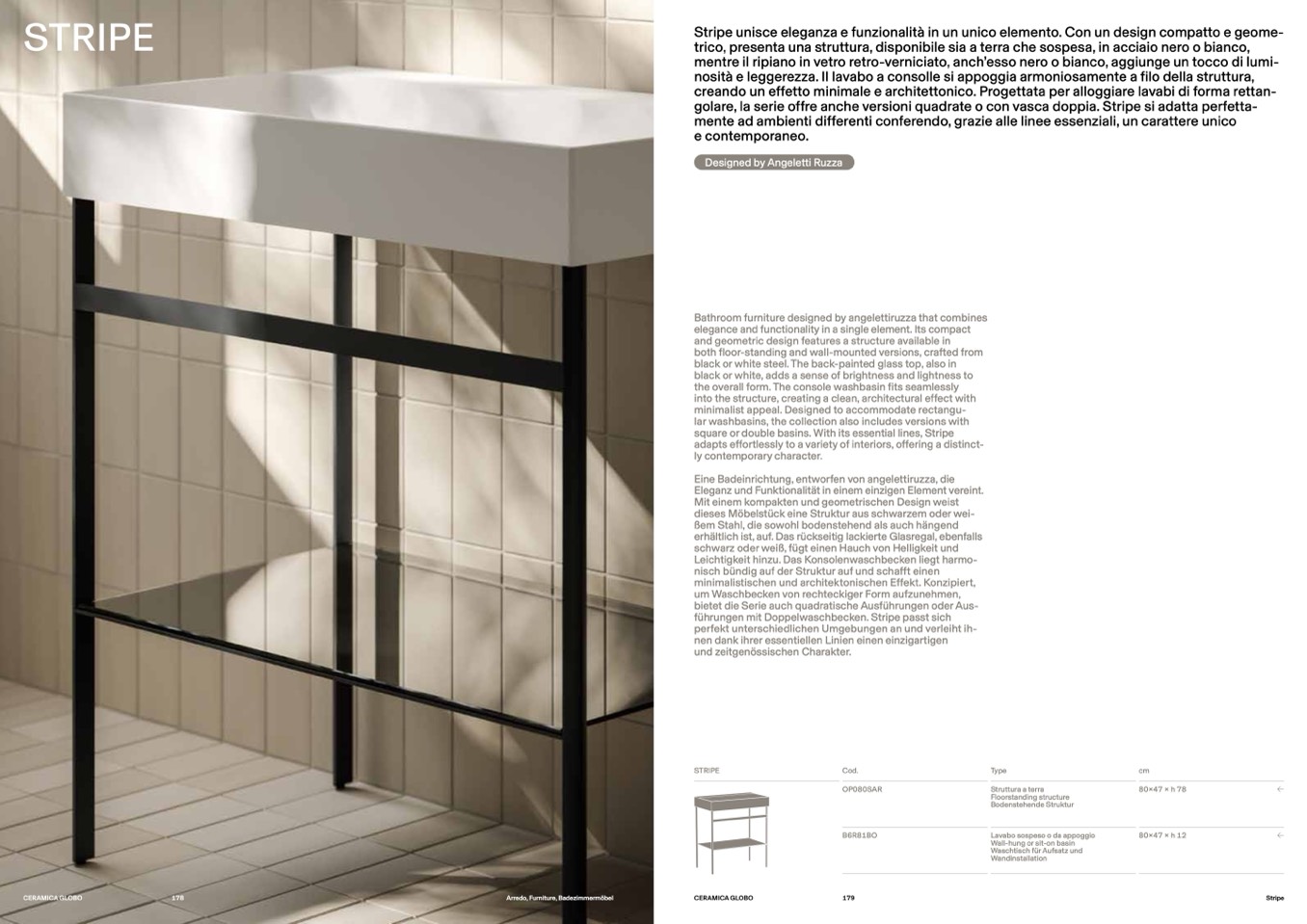golare, la serie offre anche versioni quadrate o con vasca doppia. Stripe si adatta perfetta