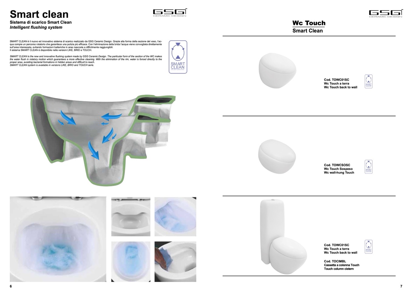 SMART CLEAN is the new and innovative flushing system made by GSG Ceramic Design. The particular form of the section of the WC makes
