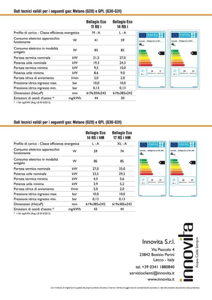 Con l’intento di migliorare la qualità dei propri prodotti, Innovita si riserva il diritto di aggiornare le caratteristiche tecniche e i dati del presente documento senza preavviso.