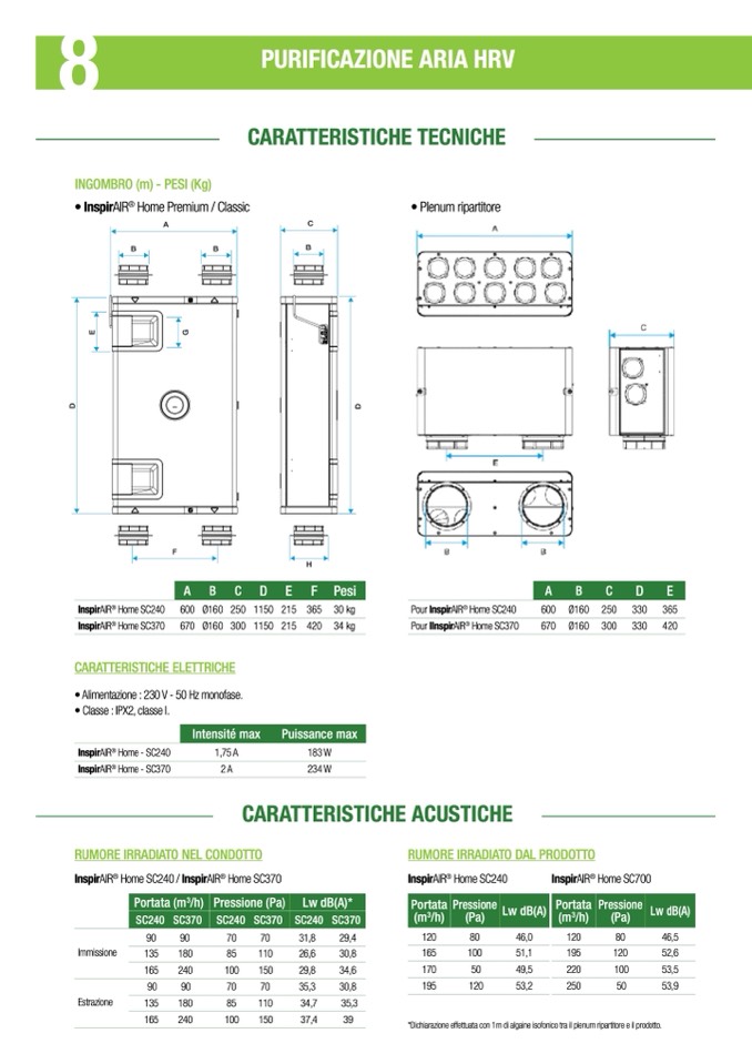 *Dichiarazione effettuata con 1m di algaine isofonico tra il plenum ripartitore e il prodotto .