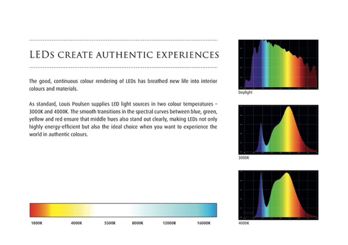 As standard, Louis Poulsen supplies LED light sources in two colour temperatures –