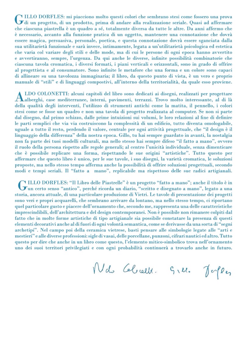 ILLO DORFLES: “Il Libro delle Piastrelle” è un progetto “fatto a mano”; anche il titolo è in