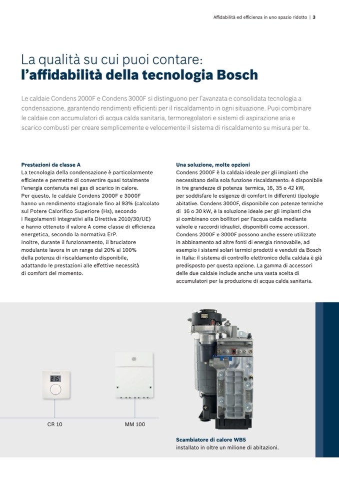 Le caldaie Condens 2000F e Condens 3000F si distinguono per l’avanzata e consolidata tecnologia a