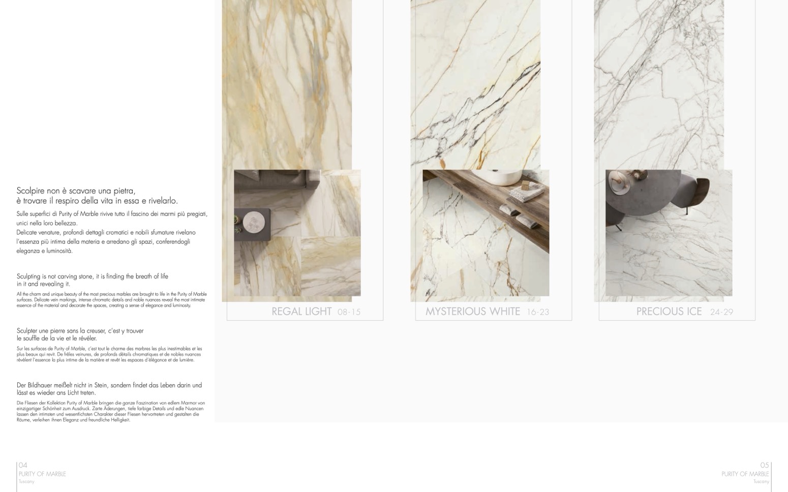 All the charm and unique beauty of the most precious marbles are brought to life in the Purity of Marble