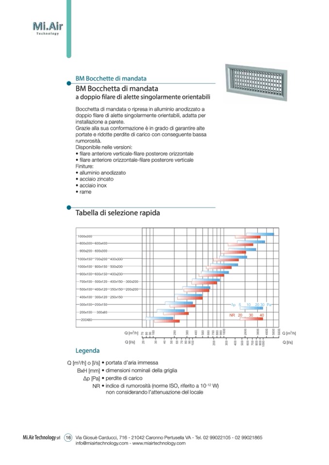 BxH [mm] • dimensioni nominali della griglia