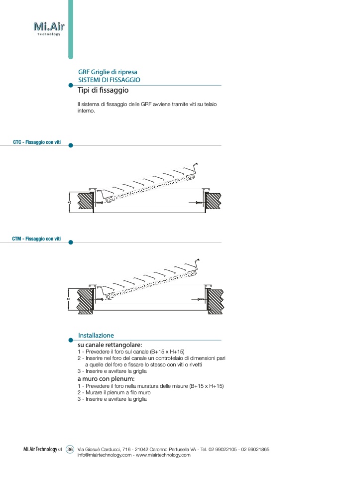 Il sistema di fissaggio delle GRF avviene tramite viti su telaio