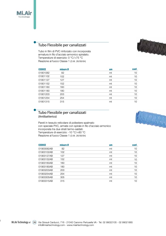 con speciale PVC, armate con spirale in filo d’acciaio armonico