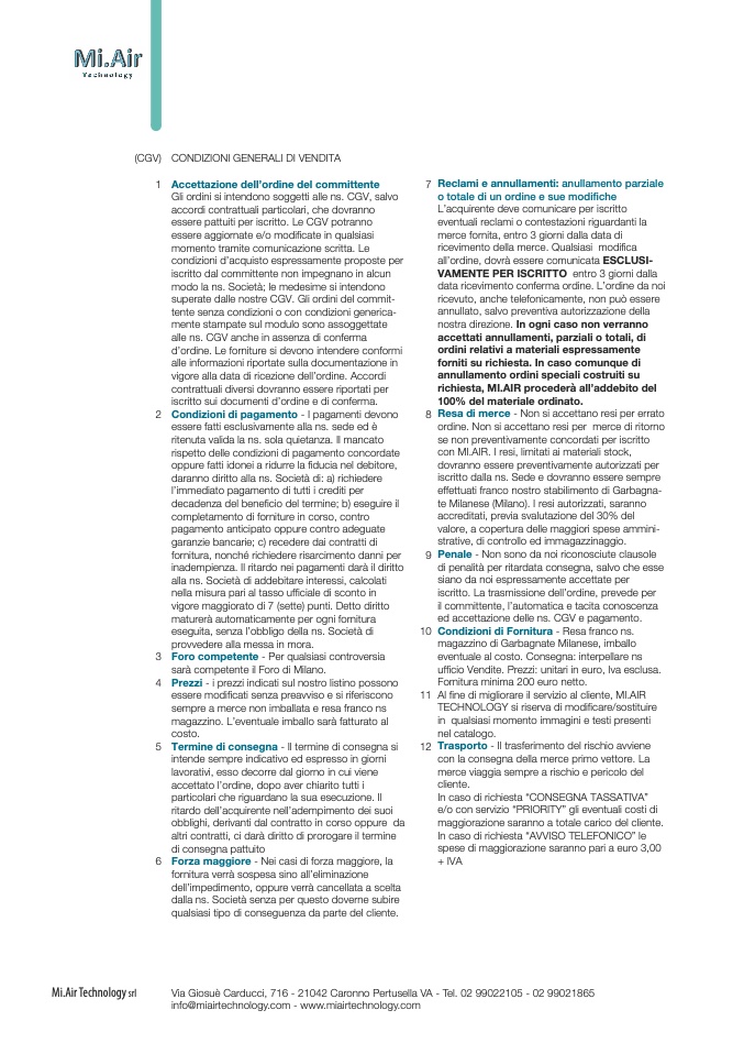 Gli ordini si intendono soggetti alle ns. CGV, salvo