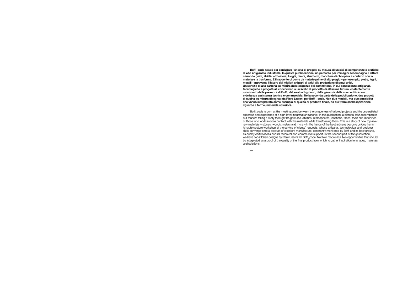 Boffi_code nasce per coniugare l’unicità di progetti su misura all’unicità di competenze e pratiche