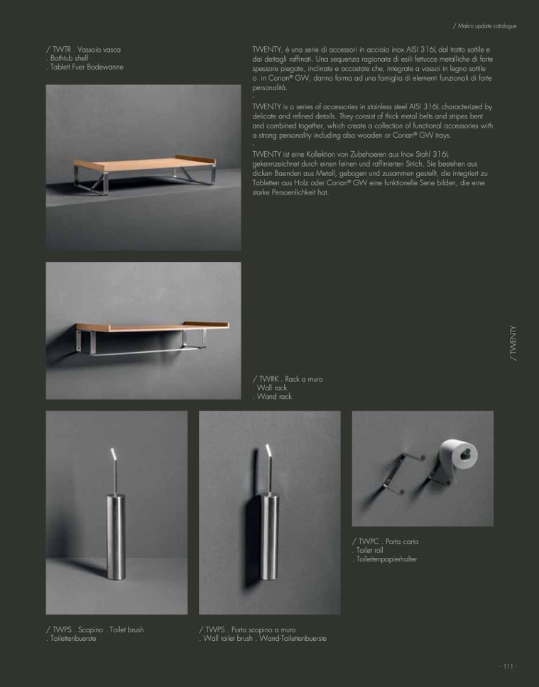 TWENTY is a series of accessories in stainless steel AISI 316L characterized by