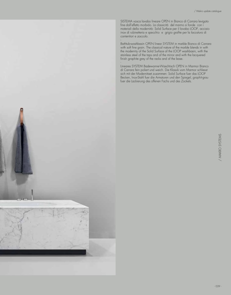Bathtub-washbasin OPEN linear SYSTEM in marble Bianco di Carrara