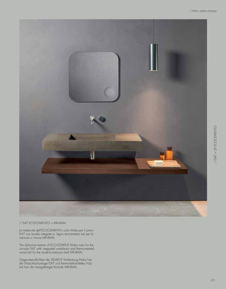die Waschtischanlage FLAT und thermo-behandeltes Holz