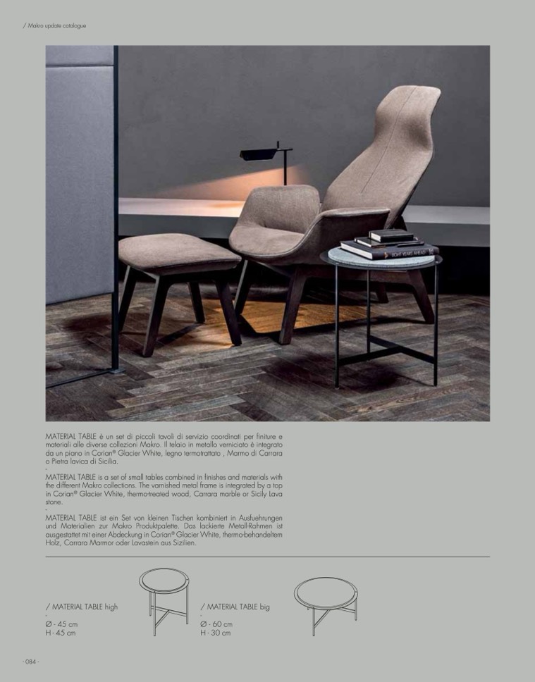 MATERIAL TABLE is a set of small tables combined in finishes and materials with