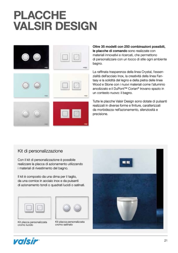 Tutte le placche Valsir Design sono dotate di pulsanti