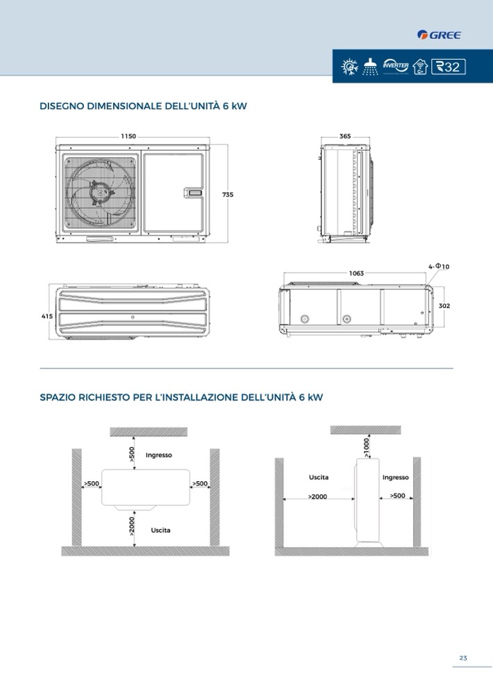 SPAZIO RICHIESTO PER L’INSTALLAZIONE DELL’UNITÀ 6 kW