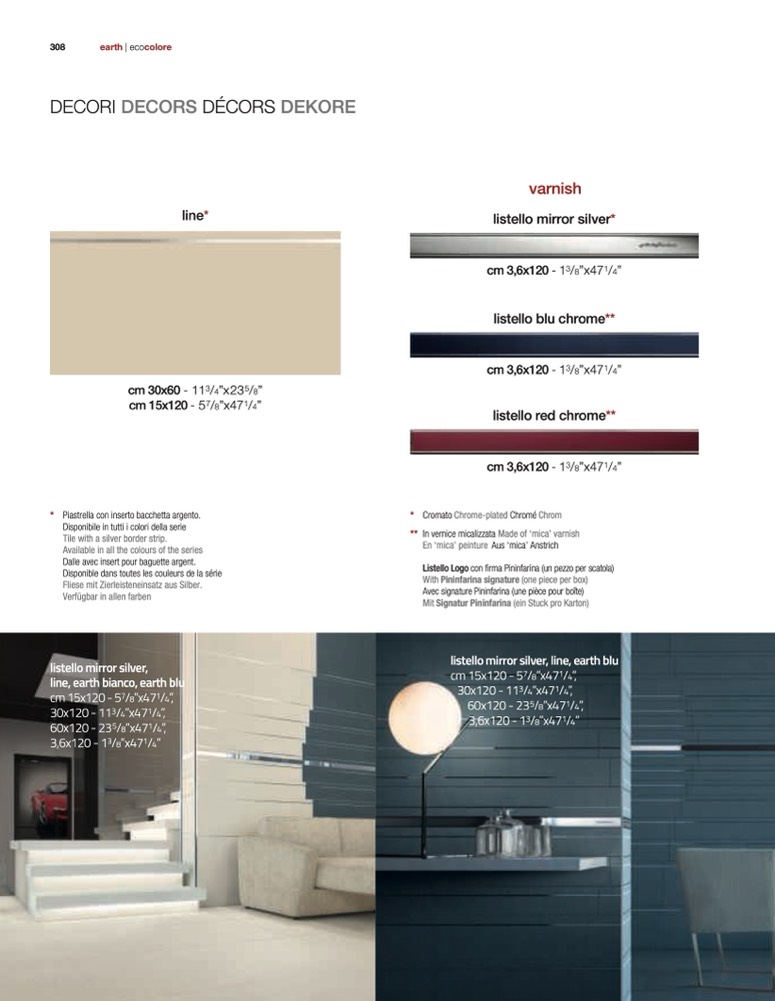 * Piastrella con inserto bacchetta argento.