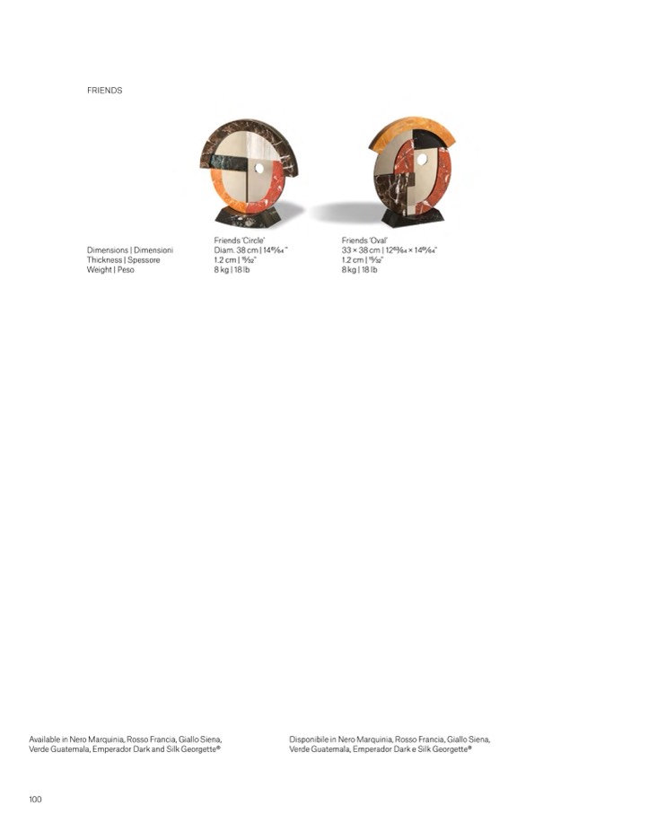 Available in Nero Marquinia, Rosso Francia, Giallo Siena,