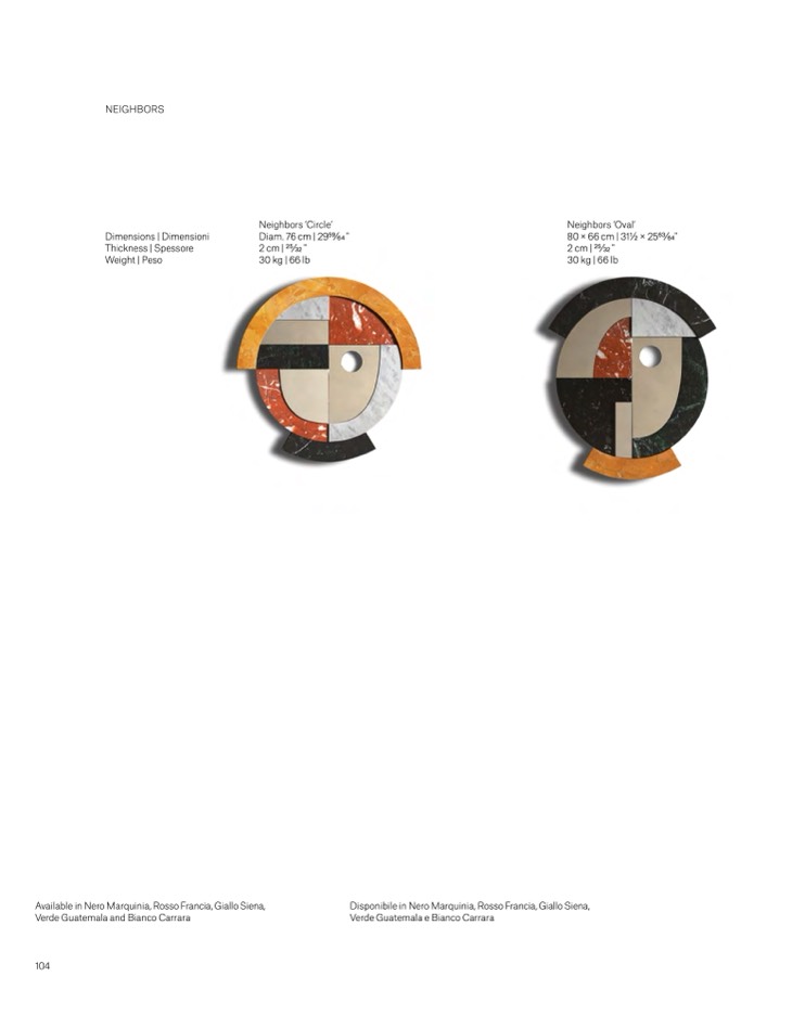 Available in Nero Marquinia, Rosso Francia, Giallo Siena,