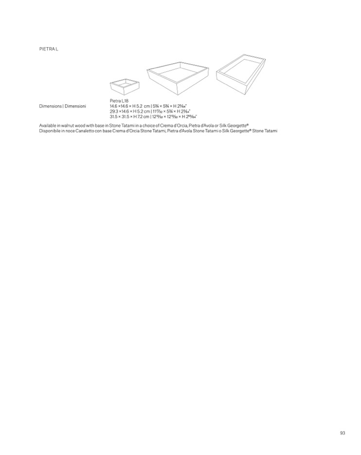 Available in walnut wood with base in Stone Tatami in a choice of Crema d’Orcia, Pietra d’Avola or Silk Georgette®