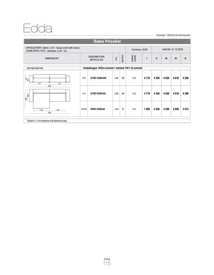 COMFORTS: STD - standard, LUX - lux
