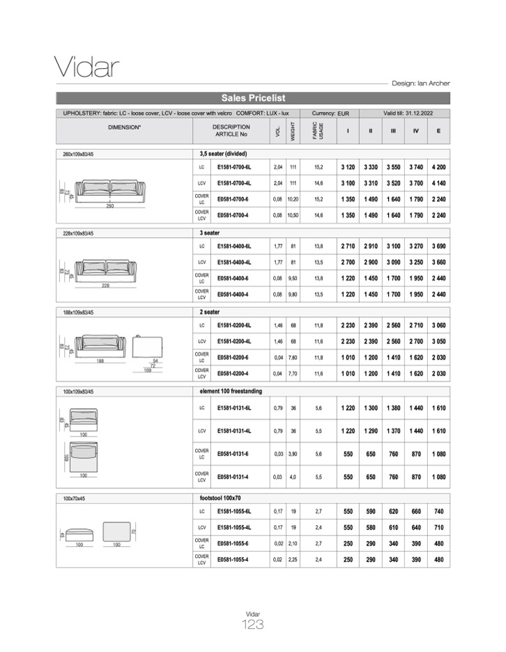 UPHOLSTERY: fabric: LC - loose cover, LCV - loose cover with velcro COMFORT: LUX - lux