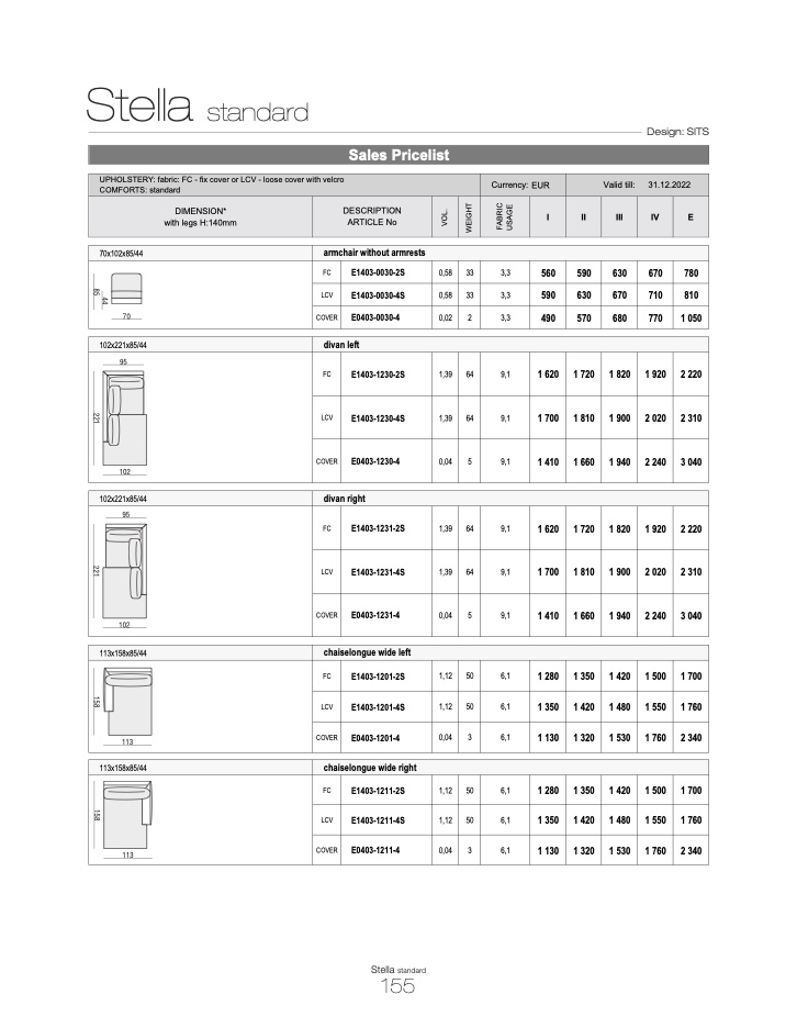 UPHOLSTERY: fabric: FC - fix cover or LCV - loose cover with velcro