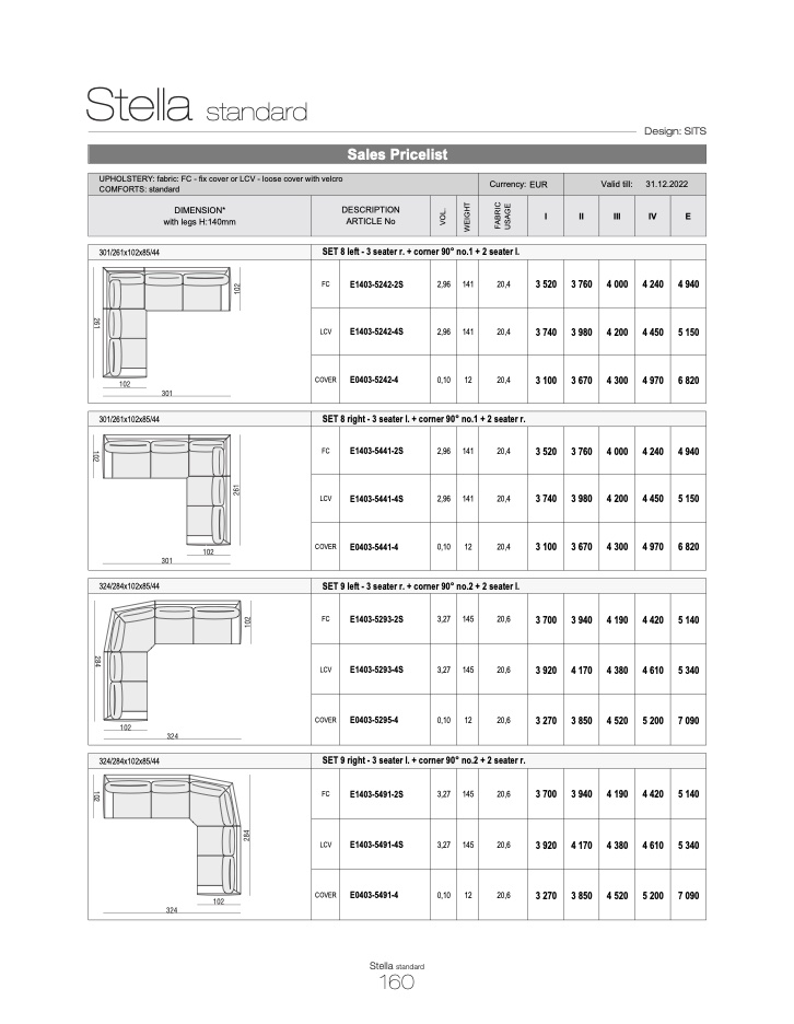 UPHOLSTERY: fabric: FC - fix cover or LCV - loose cover with velcro
