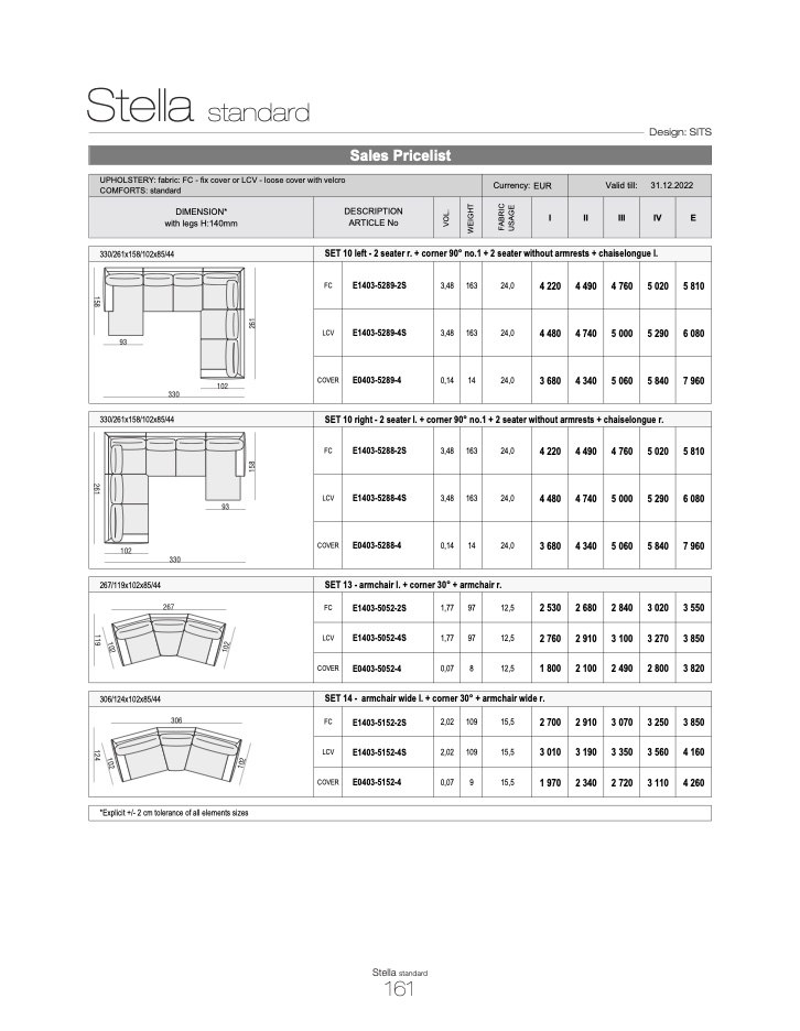 UPHOLSTERY: fabric: FC - fix cover or LCV - loose cover with velcro