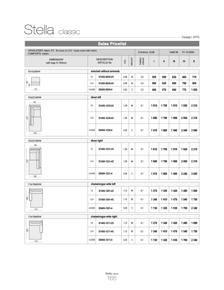 UPHOLSTERY: fabric: FC - fix cover or LCV - loose cover with velcro