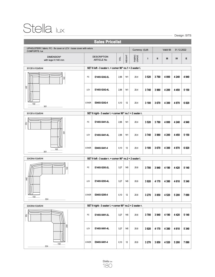 UPHOLSTERY: fabric: FC - fix cover or LCV - loose cover with velcro
