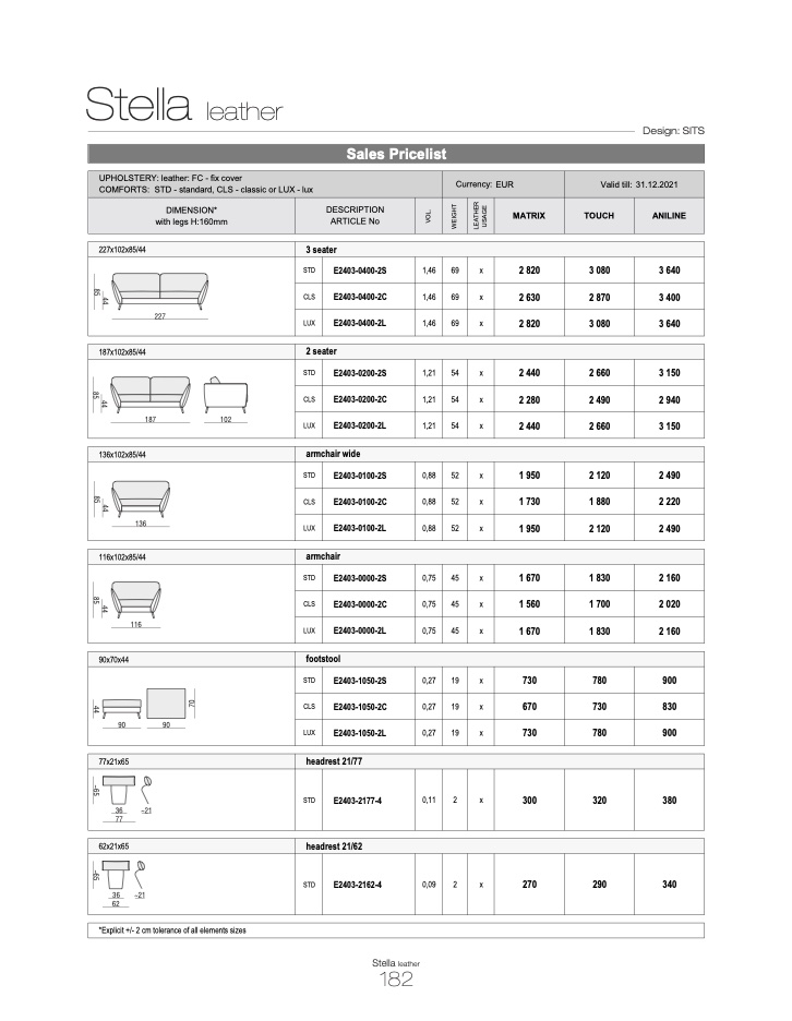 COMFORTS: STD - standard, CLS - classic or LUX - lux