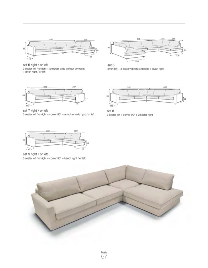 3 seater left / or right + corner 90° + armchair wide right / or left