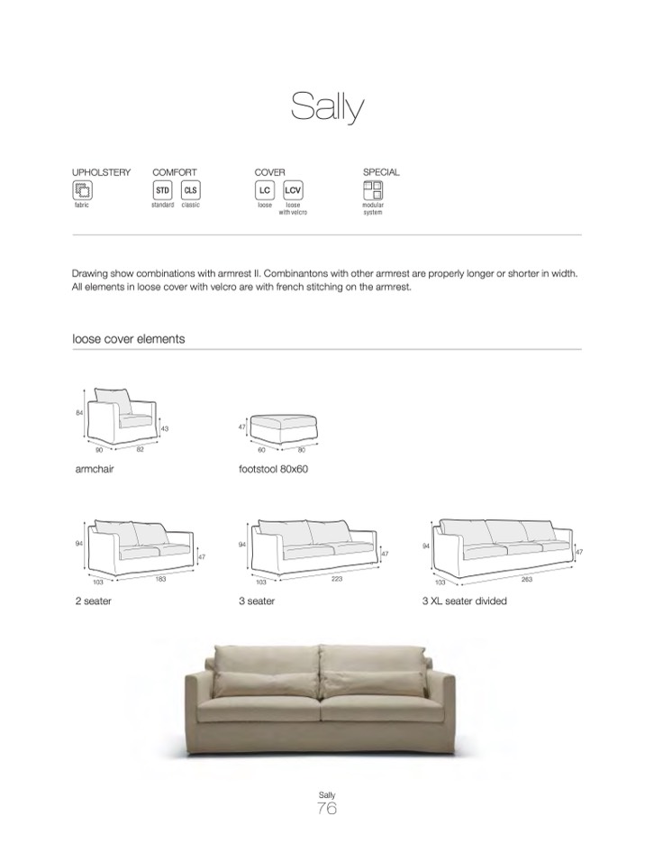 All elements in loose cover with velcro are with french stitching on the armrest.