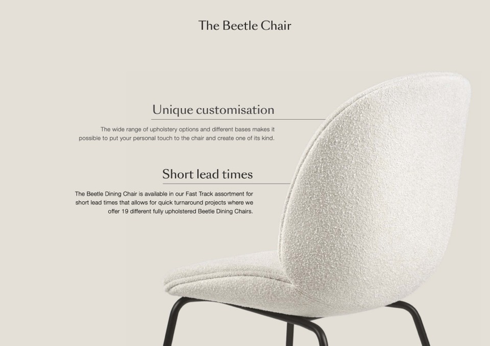 The Beetle Dining Chair is available in our Fast Track assortment for