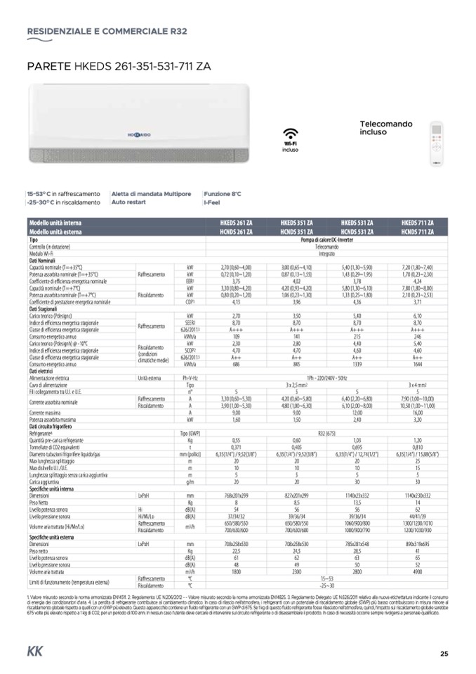 1. Valore misurato secondo la norma armonizzata EN14511. 2. Regolamento UE N.206/2012 - - Valore misurato secondo la norma armonizzata EN14825. 3. Regolamento Delegato UE N.626/2011 relativo alla nuova etichettatura indicante il consumo