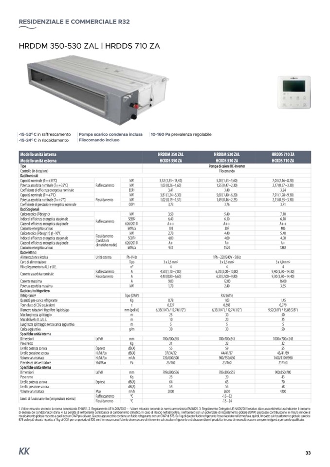 1. Valore misurato secondo la norma armonizzata EN14511. 2. Regolamento UE N.206/2012 - - Valore misurato secondo la norma armonizzata EN14825. 3. Regolamento Delegato UE N.626/2011 relativo alla nuova etichettatura indicante il consumo