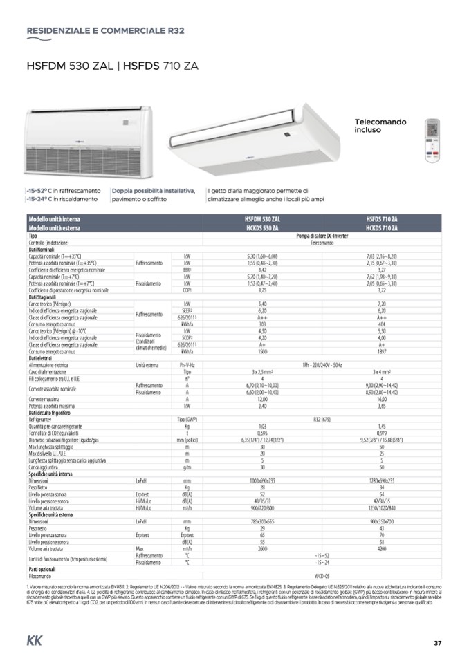 1. Valore misurato secondo la norma armonizzata EN14511. 2. Regolamento UE N.206/2012 - - Valore misurato secondo la norma armonizzata EN14825. 3. Regolamento Delegato UE N.626/2011 relativo alla nuova etichettatura indicante il consumo